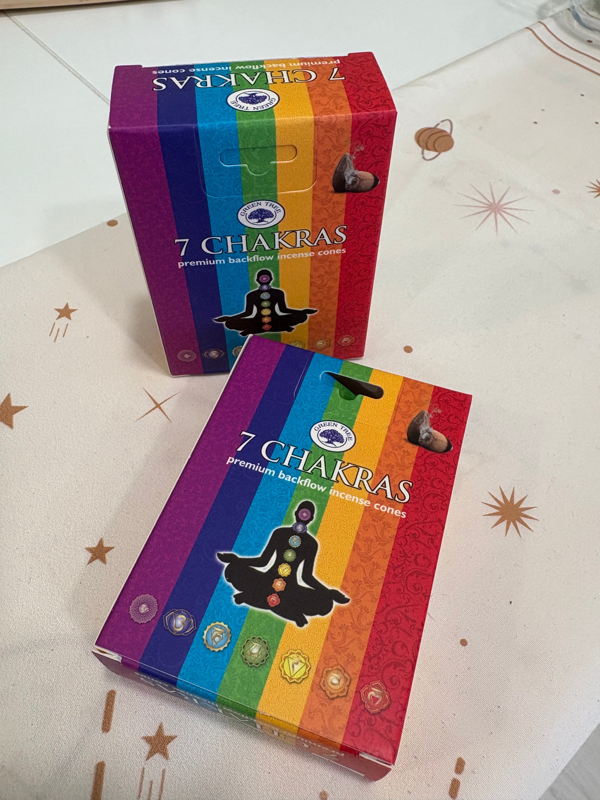 Sumérgete en una experiencia sensorial y espiritual con estos conos de incienso backflow premium, diseñados para activar y equilibrar los siete chakras principales. Cada caja contiene aromas cuidadosamente seleccionados para estimular la energía vital desde la raíz hasta la corona.