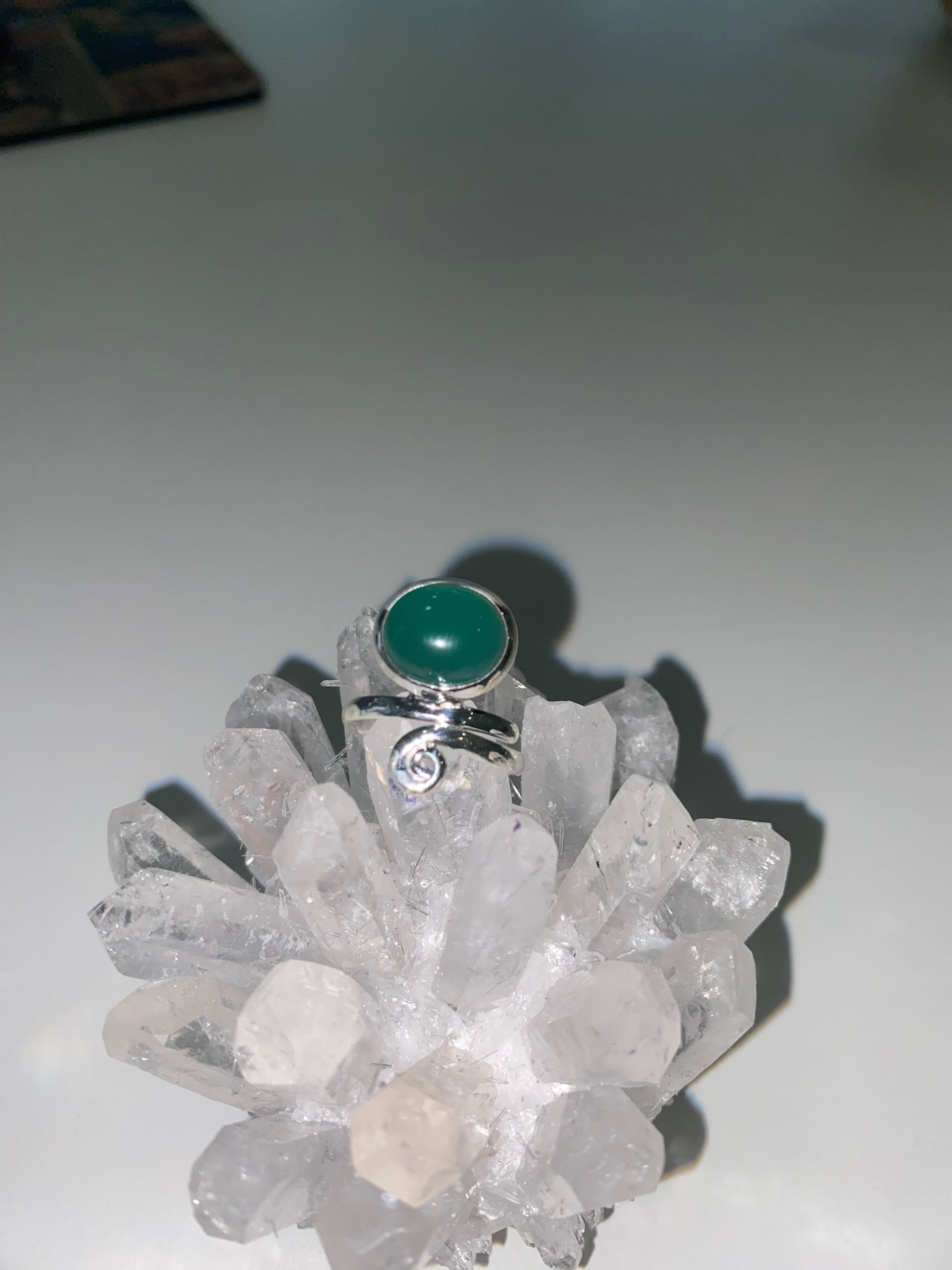 Este anillo ajustable de plata de ley 925 con piedra natural de venturina verde es una joya que combina estilo y energía positiva. La venturina verde es conocida por atraer la prosperidad, fomentar la creatividad y aportar equilibrio emocional.