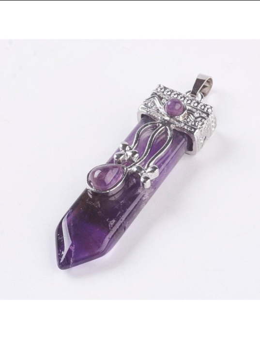 ¡Lleva contigo la belleza natural y sanadora de la amatista con este colgante en forma de punta! Hecho de amatista pura, este colgante no solo es un accesorio elegante, sino también una piedra de protección que puede ayudarte a encontrar la paz interior y la claridad mental. ¡Haz que la amatista sea parte de tu día a día!