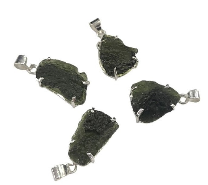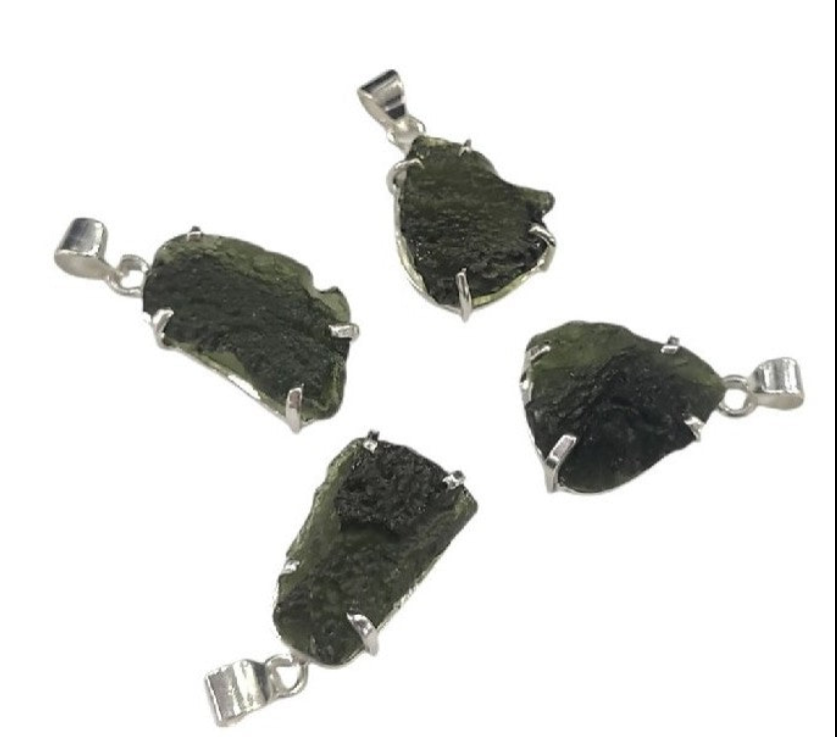 Este impresionante colgante está elaborado en plata de ley, con una poderosa moldavita, una piedra asociada a la transformación y la conexión espiritual. Su diseño en forma de garra resalta su energía única.