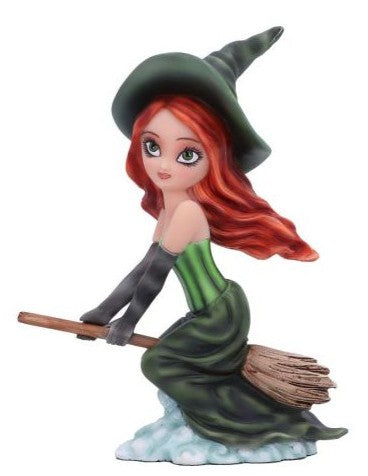La Figura Dolly Bruja Flying de color verde encapsula el poder de la libertad y la conexión con la energía natural. Esta representación mística muestra a una bruja surcando los cielos con su escoba, simbolizando la transición entre el mundo terrenal y el espiritual. El verde, color ligado a la naturaleza y la sanación, resalta su propósito de atraer prosperidad, equilibrio y protección.