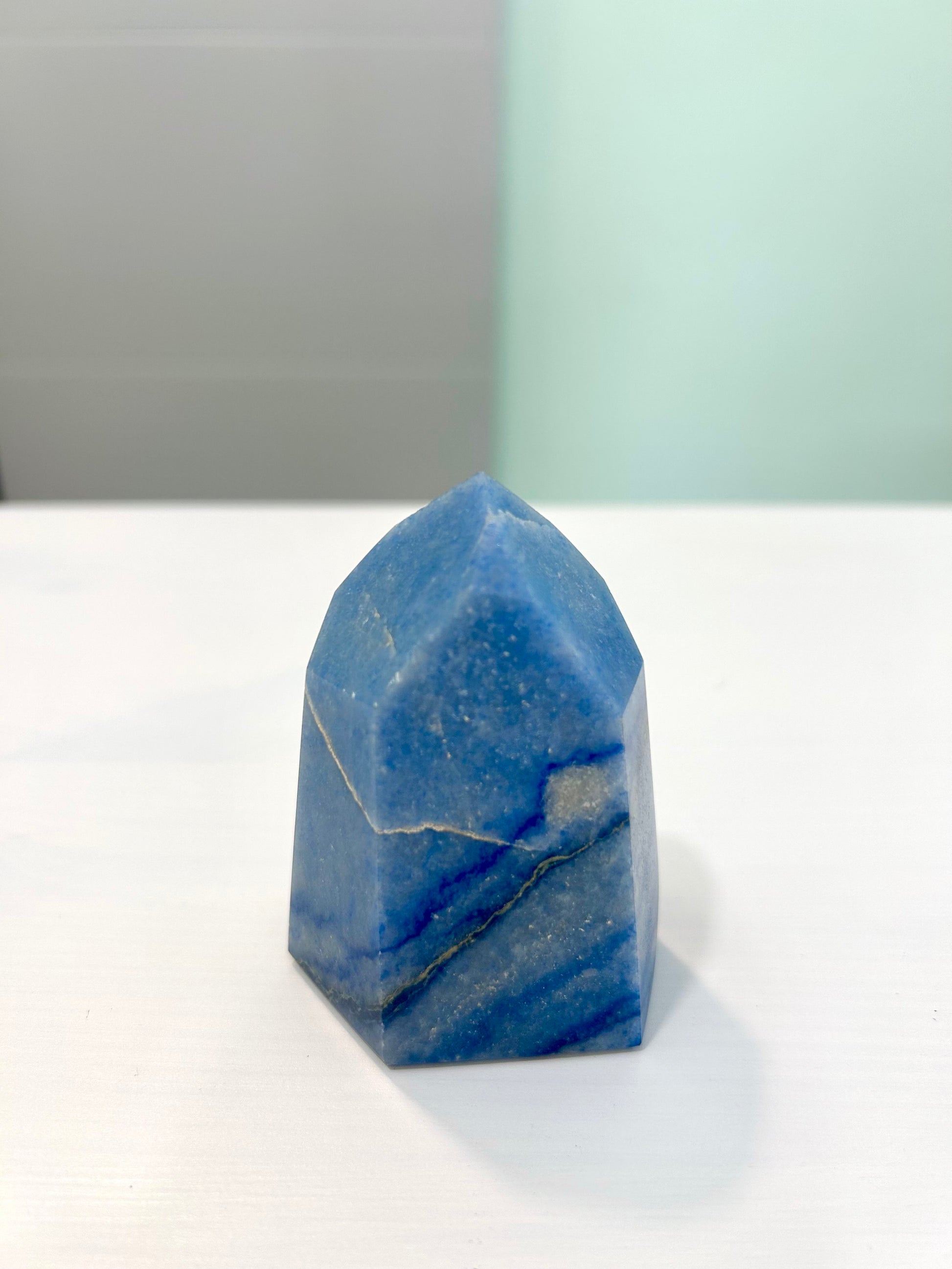🔵 Cuarzo azul: Favorece la serenidad, la claridad mental y la expresión sincera. 🗿 Forma de obelisco: Canaliza la energía de manera focalizada, potenciando su efecto. ✨ Uso espiritual: Ideal para espacios de relajación, meditación y equilibrio emocional.