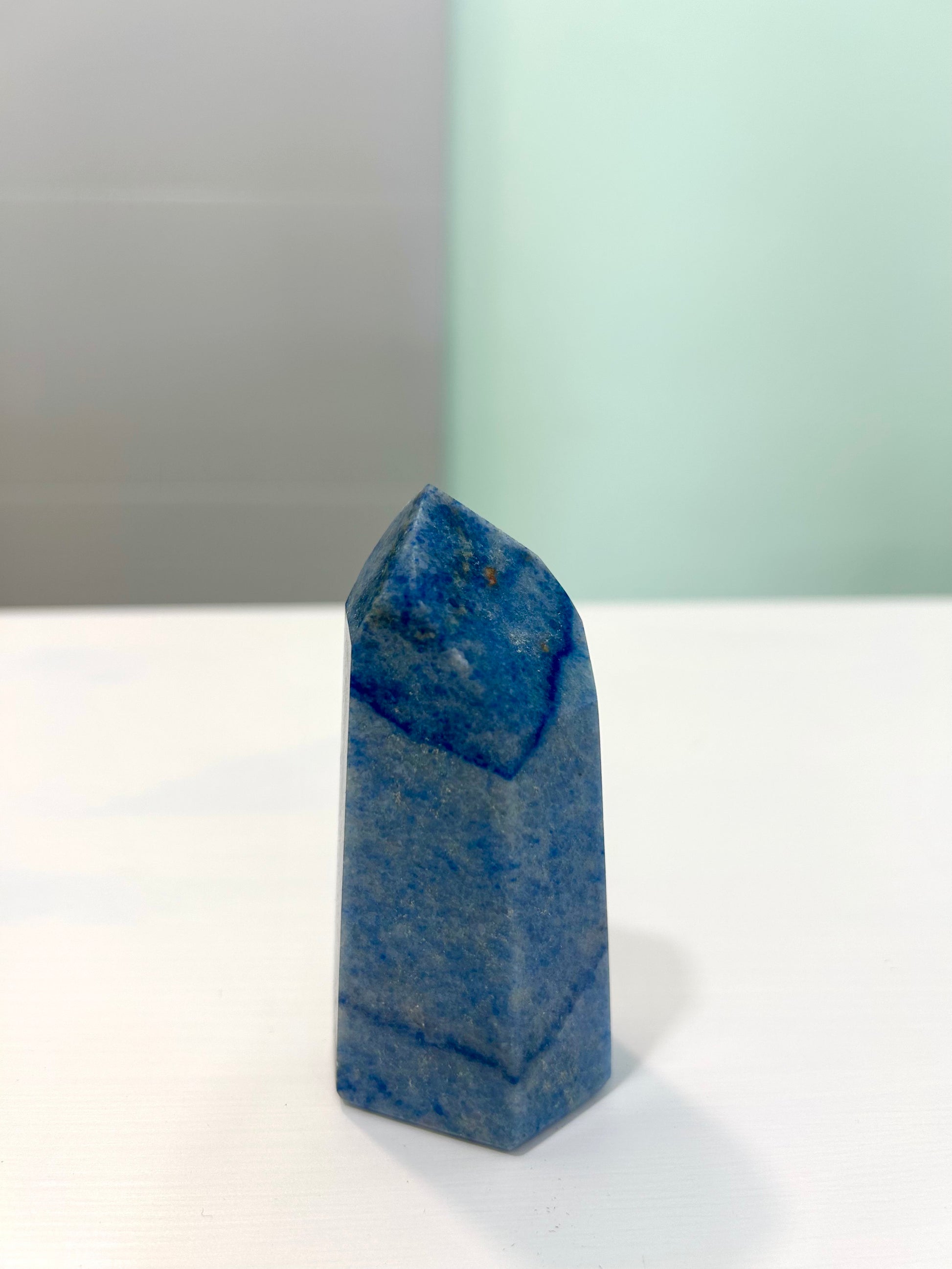 🔵 Cuarzo azul: Favorece la serenidad, la claridad mental y la expresión sincera. 🗿 Forma de obelisco: Canaliza la energía de manera focalizada, potenciando su efecto. ✨ Uso espiritual: Ideal para espacios de relajación, meditación y equilibrio emocional.