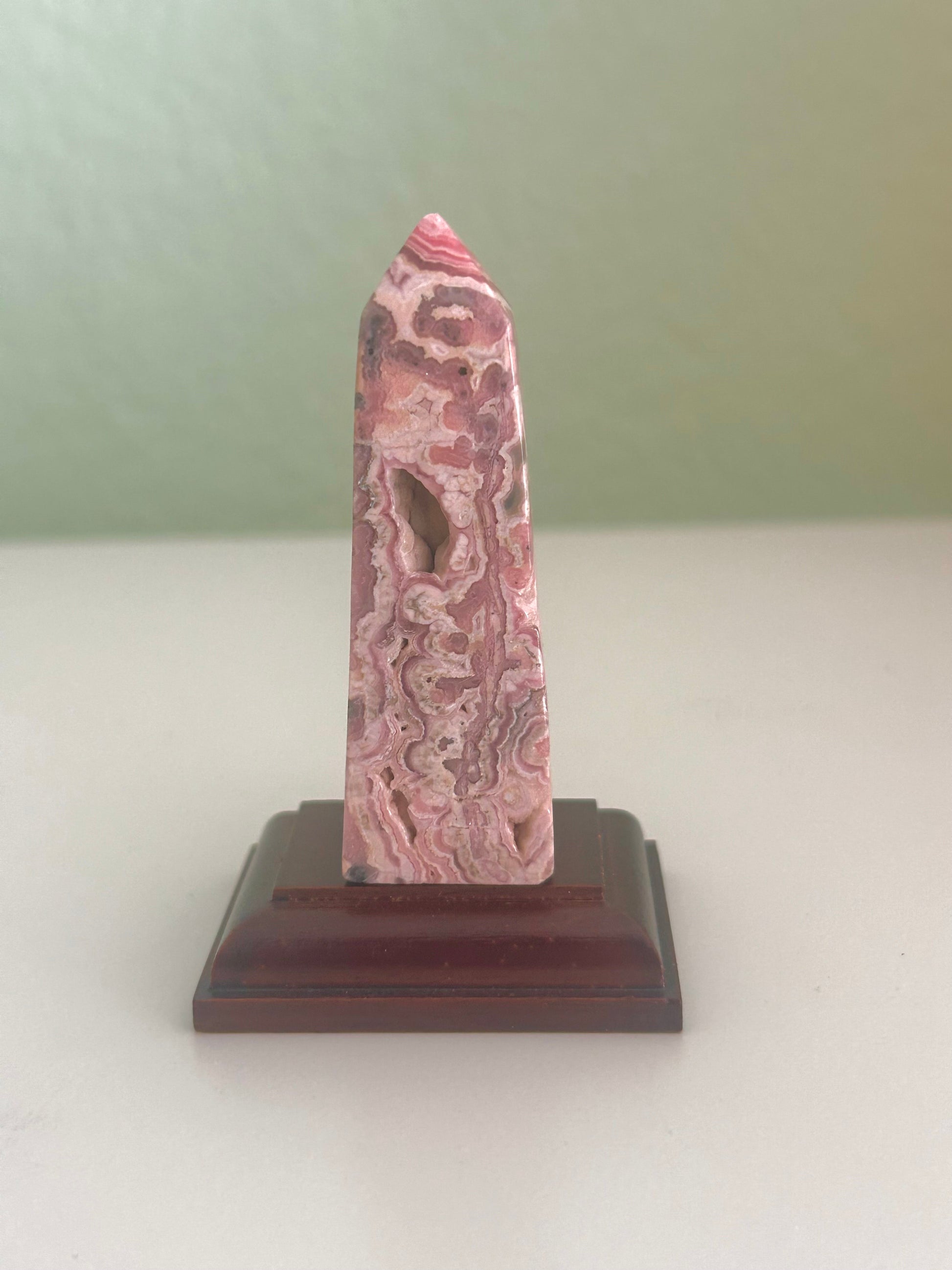 El obelisco de rodocrosita es una pieza energética con un diseño elegante y propiedades vibracionales únicas.