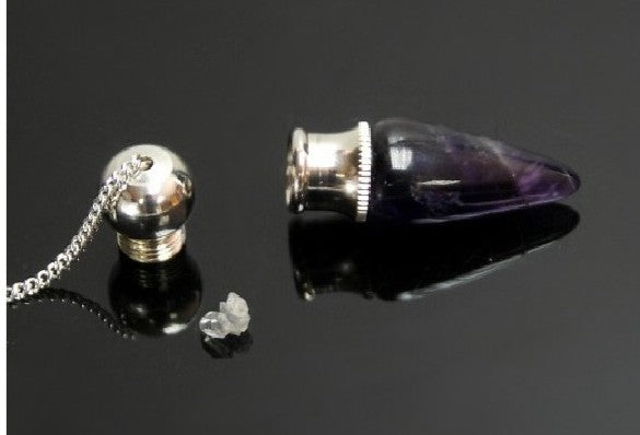 Este extraordinario péndulo combina la energía mística de la amatista con un pequeño cofre incorporado, permitiendo una conexión personalizada con las respuestas buscadas.