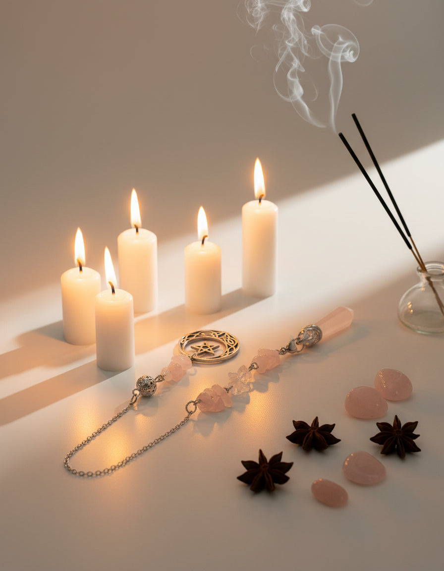 El Péndulo de Cuarzo Rosa con Pentagrama es una herramienta cargada de energía esotérica y simbólica, perfecta para quienes buscan armonizar sus prácticas espirituales y de adivinación.