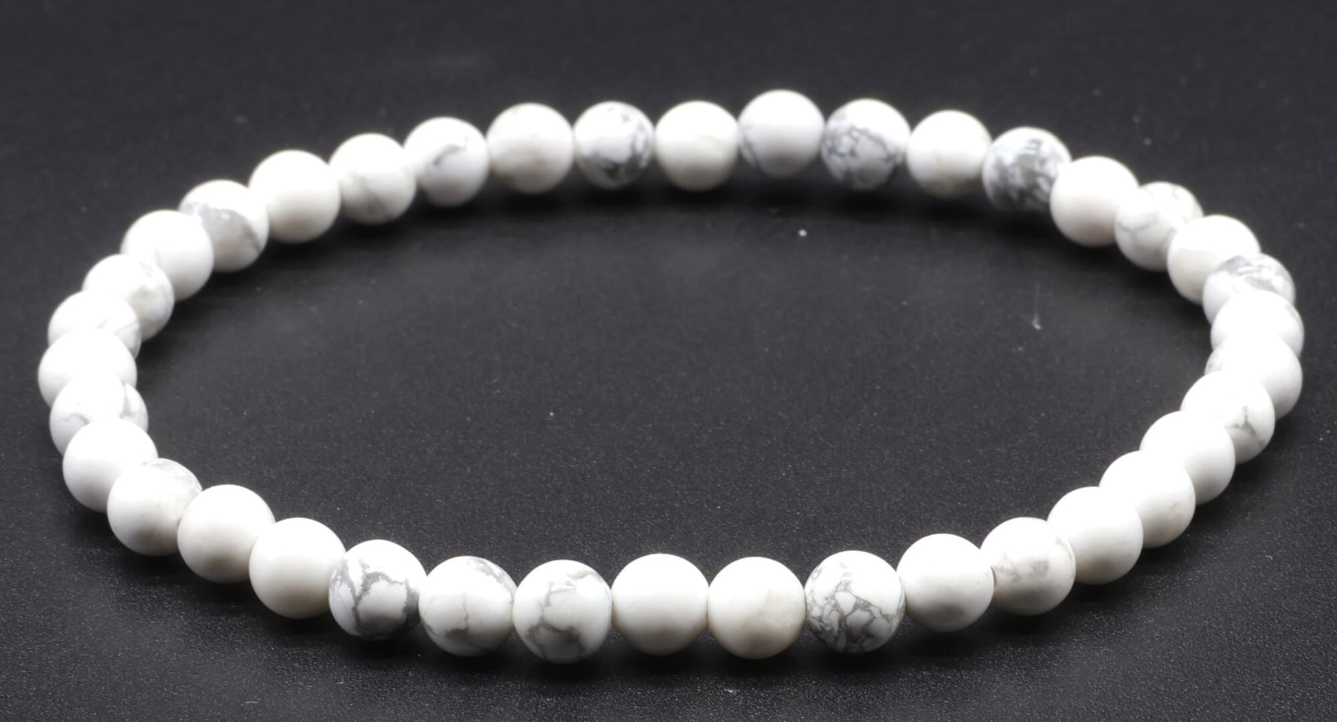 La Pulsera Howlita Blanca con perlas de 4mm es un accesorio elegante y lleno de energía calmante. La howlita blanca, conocida por su tono suave y propiedades relajantes, se asocia con la paz interior, la paciencia y la claridad mental. Es ideal para quienes buscan equilibrio emocional y serenidad en su día a día.