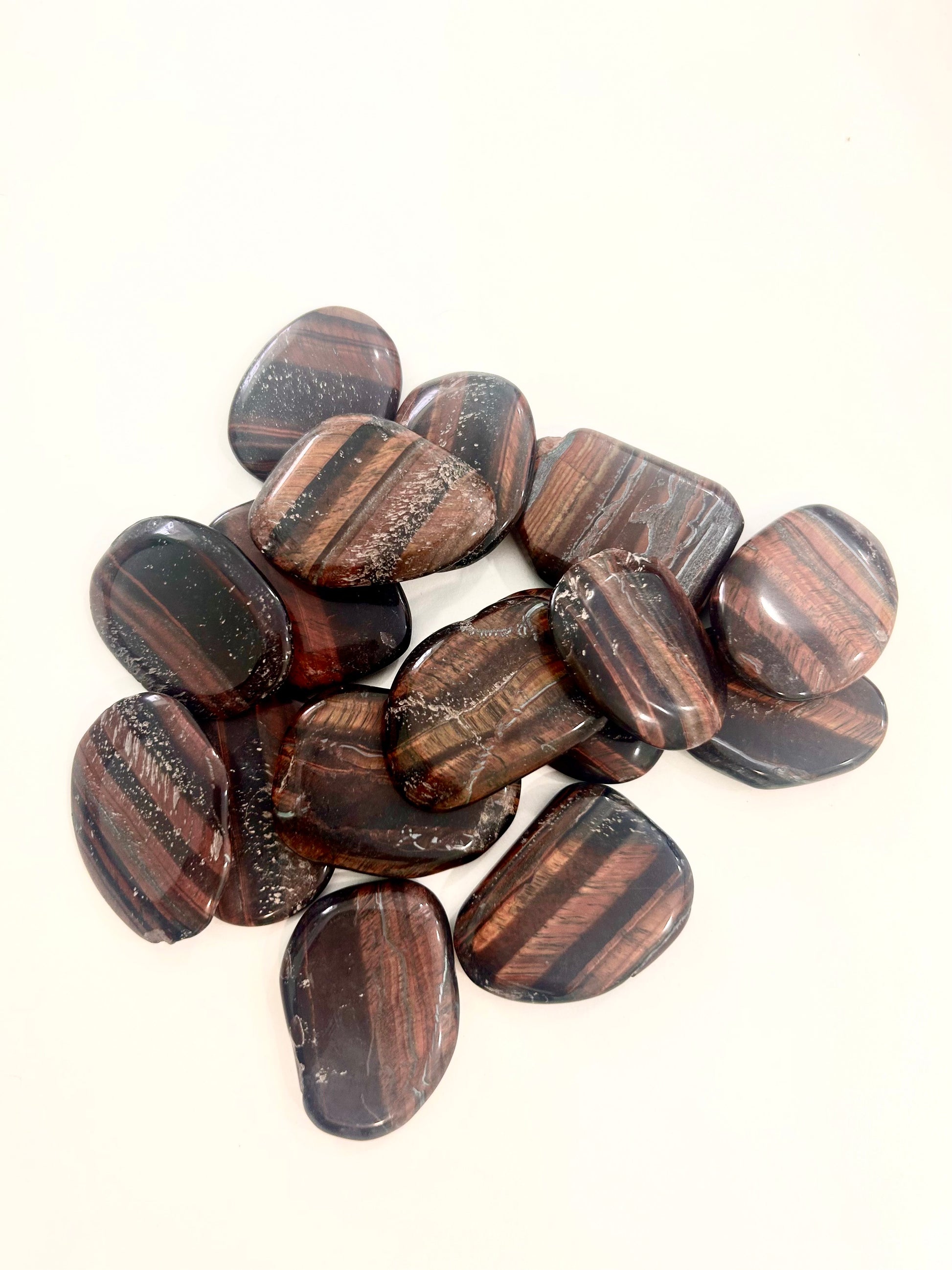 El ojo de buey es una variedad de cuarzo microcristalino, similar al ojo de tigre, pero con tonos marrón rojizo más intensos. Se forma a partir de la transformación térmica del ojo de tigre, lo que le otorga su color característico.