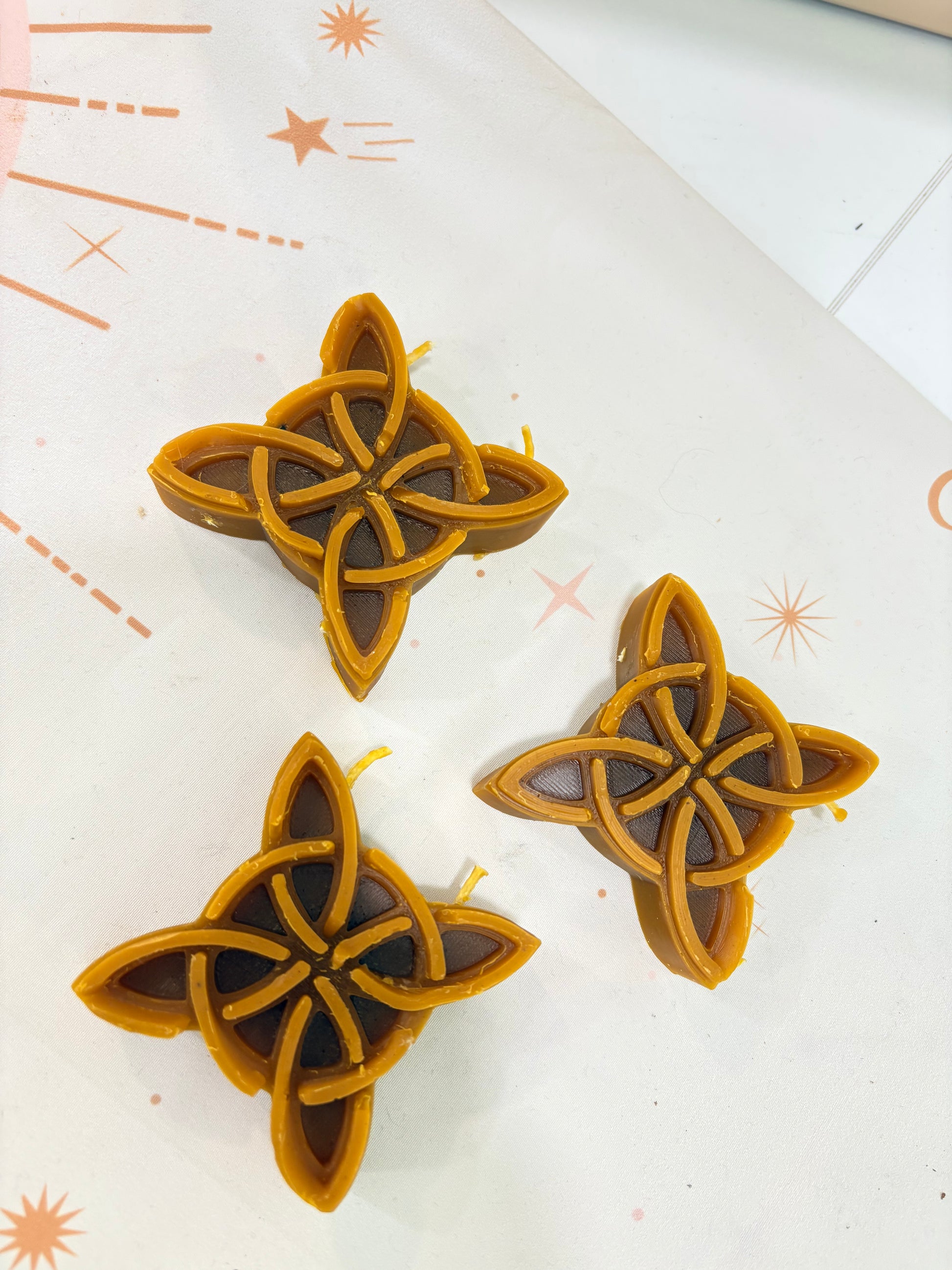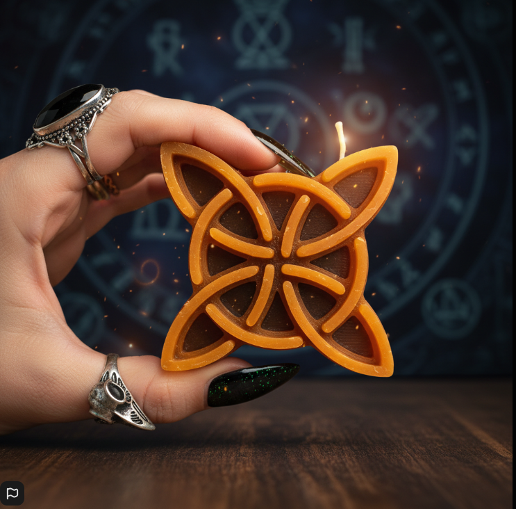 La vela de miel bio 100% con símbolo del Nudo de Bruja es una poderosa herramienta espiritual, elaborada artesanalmente con cera de abeja pura y libre de parafina o químicos. El Nudo de Bruja, símbolo celta de protección mágica, potencia la defensa energética, el cierre de ciclos negativos y la conexión con fuerzas ancestrales.